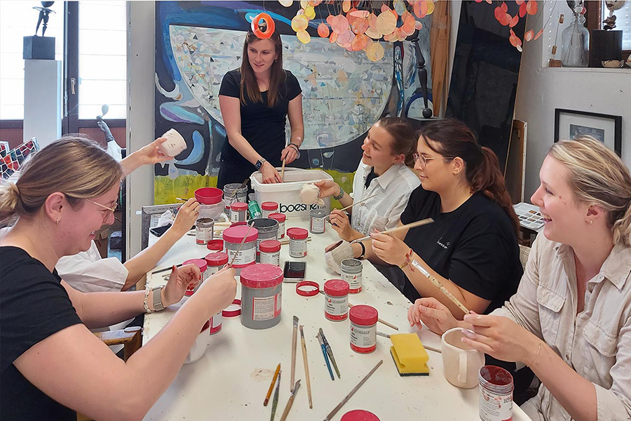 Jetzt kommen Pinsel, Glasuren und deine Fantasie ins Spiel. Du gestaltest dein Werk ganz nach deinem Geschmack – bunt, zart, kontrastreich oder dezent.